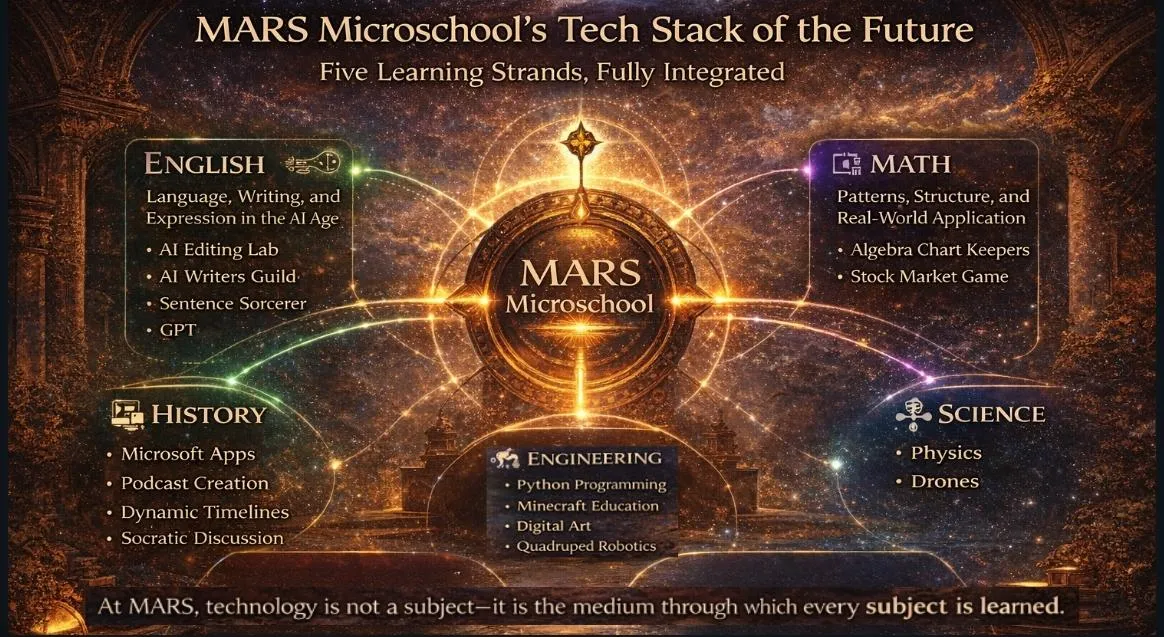 Yes. MARS provides a full academic load in Math, English, Science, History, and Technology for grades 6–12. Students learn through a hybrid model combining weekly instruction, AI-supported workflows, and asynchronous assignments designed for flexibility and depth.